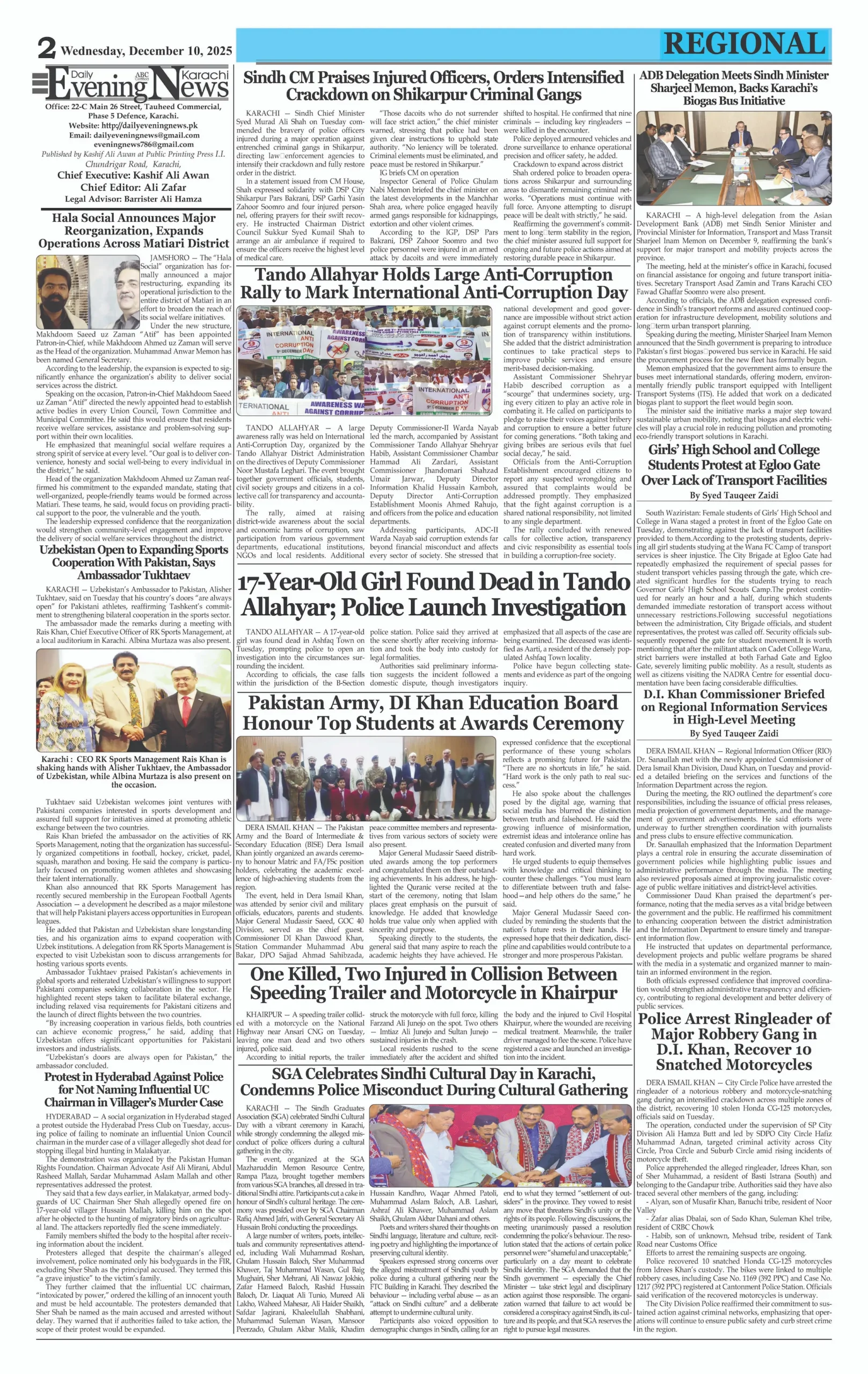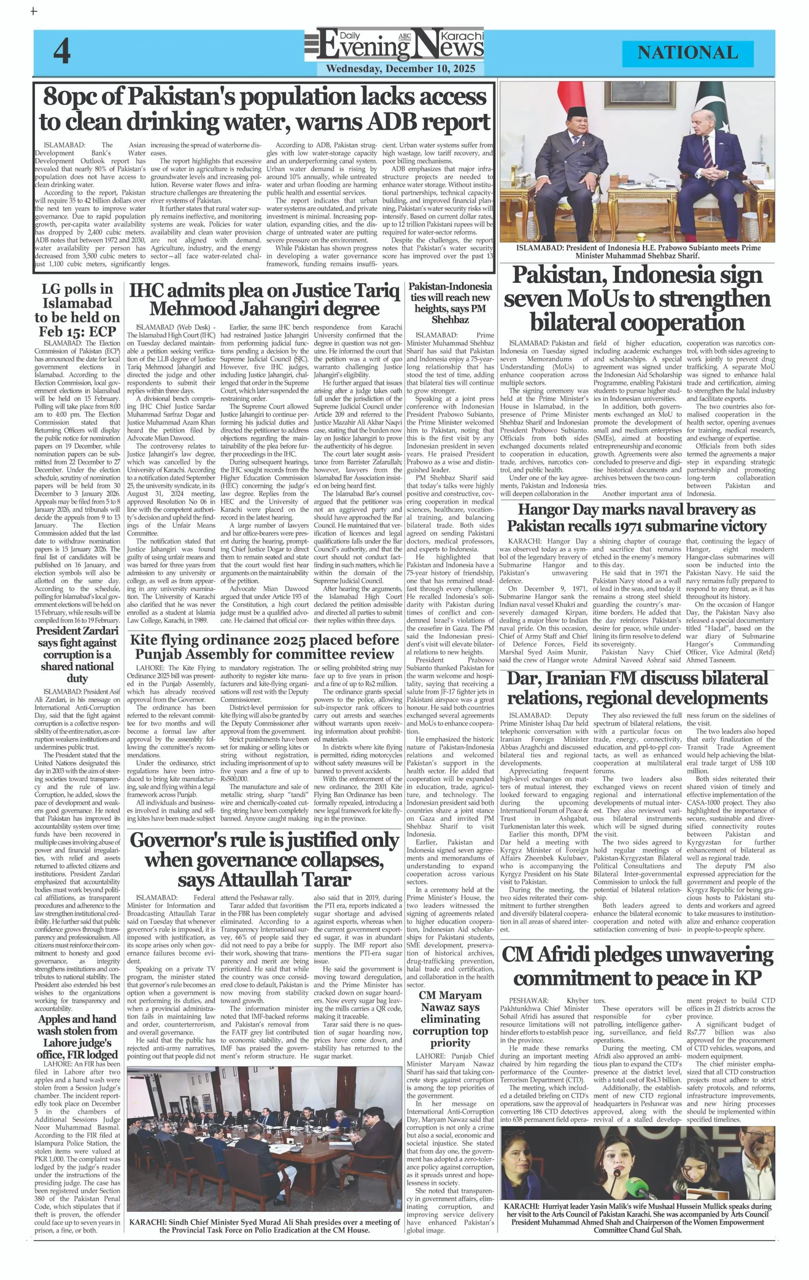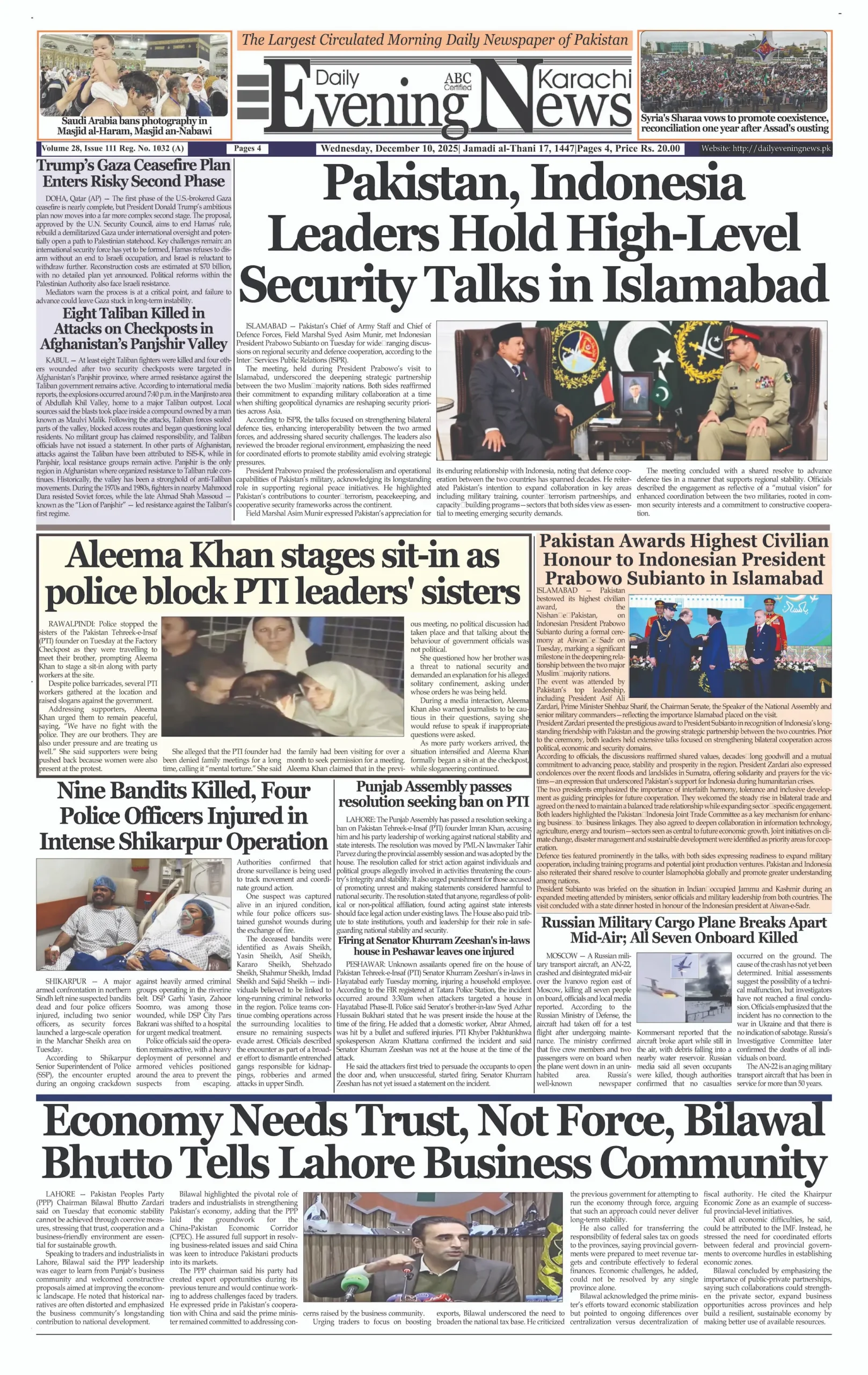 ePaper Wednesday December 10, 2025 By: admin Date: December 10, 2025 Previous articlePakistan’s economy looking up, corruption decreasing: Transparency InternationalNext articleWhatsApp tests new ‘chat history sharing’ feature for group members adminhttps://dailyeveningnews.pk LEAVE A REPLY Cancel reply Comment: Please enter your comment! Name:* Please enter your name here Email:* You have entered an incorrect email address! Please enter your email address here Website: Save my name, email, and website in this browser for the next time I comment. Share post: FacebookTwitterPinterestWhatsApp SubscribeI want inI've read and accept the Privacy Policy. Popular Pakistan Launches Indigenously Built Electro-Optical Satellite EO-3 US Imposes New Sanctions on Iran-Linked Crypto Wallets, Oil Network EU Signals Easing of Economic Sanctions on Iran PM Shehbaz Sharif Allows Fans to Attend PSL 11 Final Pakistan Approves Emergency LNG Cargo at $18.4 per mmBtu More like thisRelated Pakistan Launches Indigenously Built Electro-Optical Satellite EO-3 admin - April 25, 2026 ISLAMABAD – Web Desk: Pakistan has achieved a significant milestone... US Imposes New Sanctions on Iran-Linked Crypto Wallets, Oil Network admin - April 25, 2026 WASHINGTON – Web Desk: The United States has imposed new... EU Signals Easing of Economic Sanctions on Iran admin - April 25, 2026 BRUSSELS – Web Desk: The European Union has signaled a... PM Shehbaz Sharif Allows Fans to Attend PSL 11 Final admin - April 25, 2026 ISLAMABAD – Web Desk: Prime Minister Shehbaz Sharif has granted...