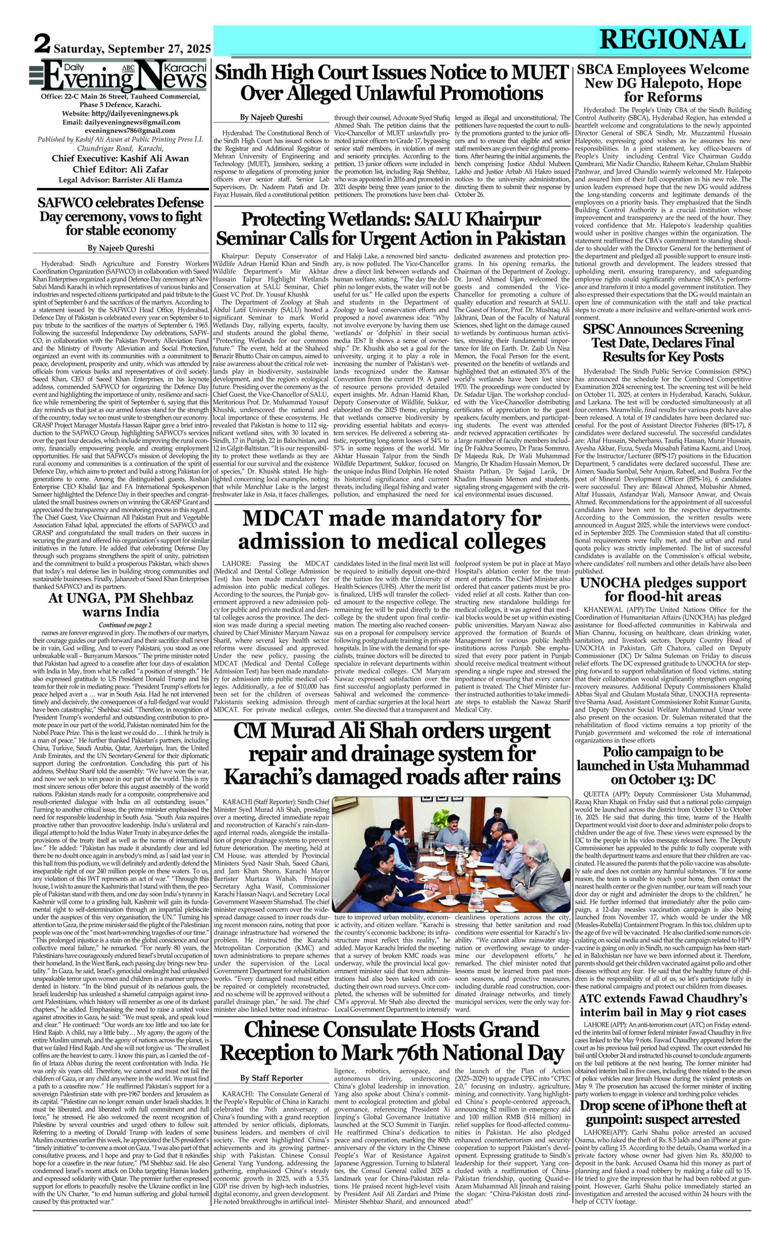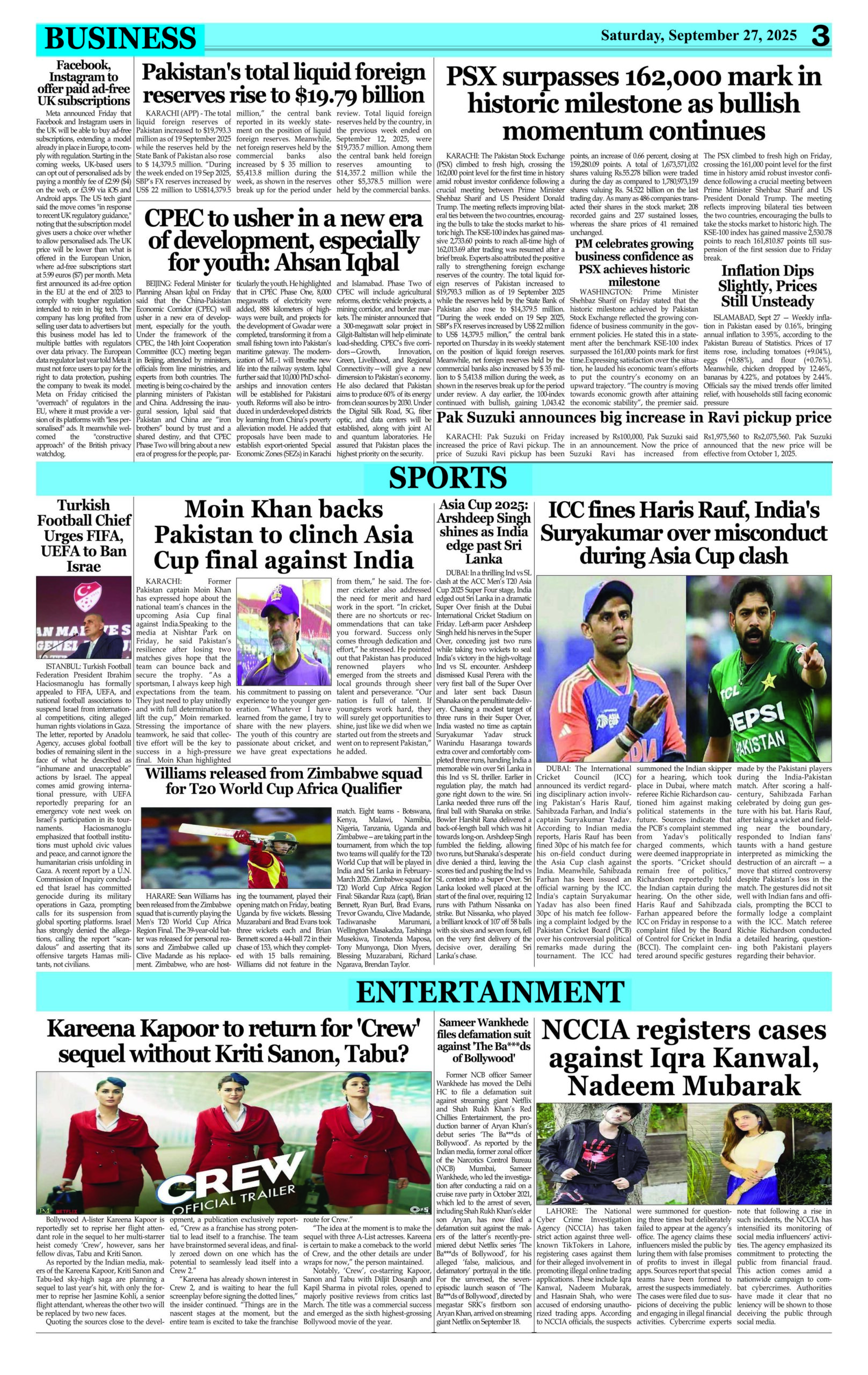 ePaper Saturday September 27, 2025 By: admin Date: September 27, 2025 Download ePAPER TagsepaperSaturday September 27 Previous articleWilliams released from Zimbabwe squad for T20 World Cup Africa QualifierNext articleBeyond expectations: How PM Shehbaz elevated Pakistan’s global standing adminhttps://dailyeveningnews.pk LEAVE A REPLY Cancel reply Comment: Please enter your comment! Name:* Please enter your name here Email:* You have entered an incorrect email address! Please enter your email address here Website: Save my name, email, and website in this browser for the next time I comment. Share post: FacebookTwitterPinterestWhatsApp SubscribeI want inI've read and accept the Privacy Policy. Popular Lebanon Says President Will Not Speak to Israeli PM Netanyahu Pope Leo Warns World Controlled by ‘Cruel Leaders’ Israeli Airstrikes Destroy Last Bridge Linking South Lebanon PSL 11: Hyderabad Kings Beat Rawalpindi by 5 Wickets Pakistan to Reduce Power Load Shedding From Tonight: Federal Minister More like thisRelated Lebanon Says President Will Not Speak to Israeli PM Netanyahu admin - April 16, 2026 Beirut, Lebanon – Web Desk: Lebanese authorities have confirmed... Pope Leo Warns World Controlled by ‘Cruel Leaders’ admin - April 16, 2026 Yaoundé, Cameroon – Web Desk: Catholic Church leader Pope... Israeli Airstrikes Destroy Last Bridge Linking South Lebanon admin - April 16, 2026 Beirut, Lebanon – Web Desk: Israeli airstrikes have destroyed... PSL 11: Hyderabad Kings Beat Rawalpindi by 5 Wickets admin - April 16, 2026 Karachi, Pakistan – Web Desk: In the 11th edition...